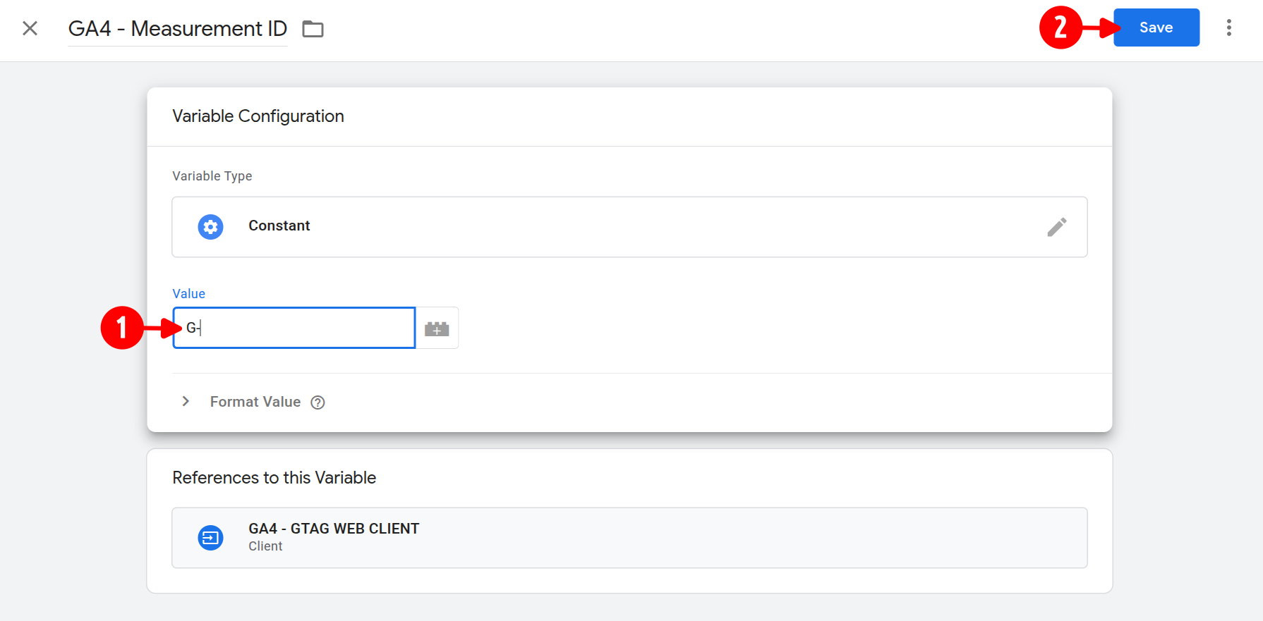 - Click on GA4 - Measurement ID to edit the variable.