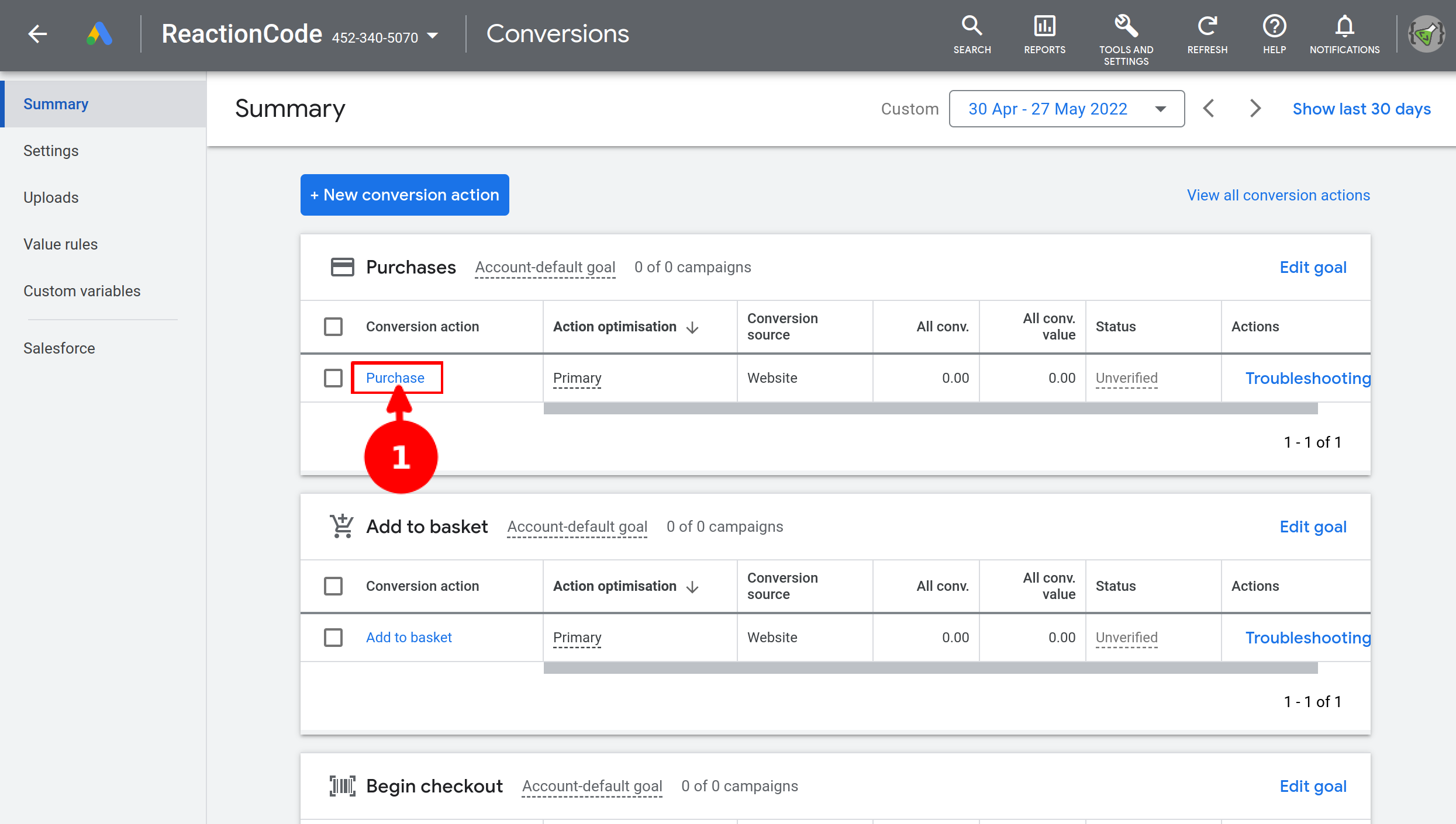 | Goal and action optimisation | Begin checkout, Secondary action |